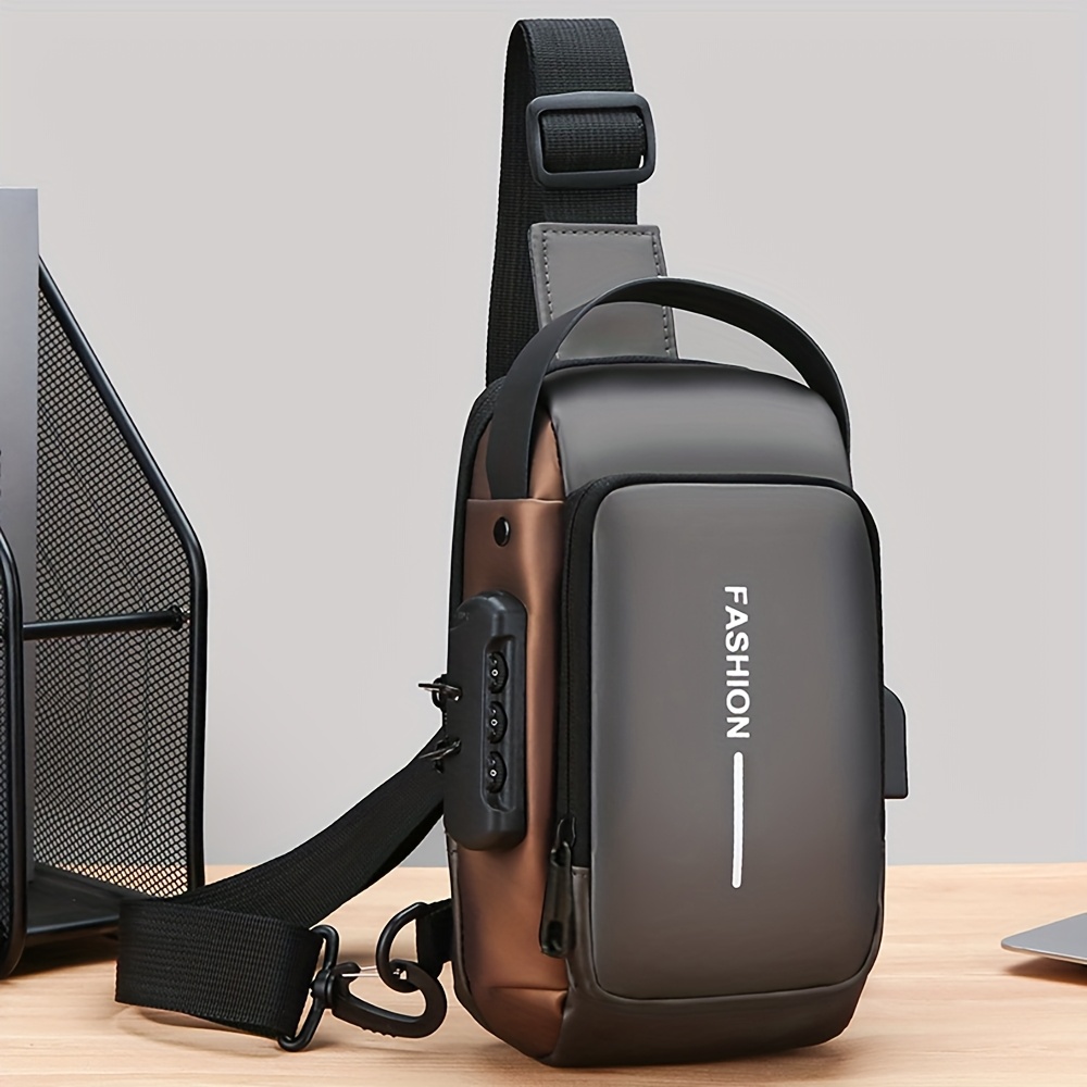 A Simple Crossbody Bag for Women, Featuring a Motorcycle Style And a Shoulder Strap with a Combination Lock.