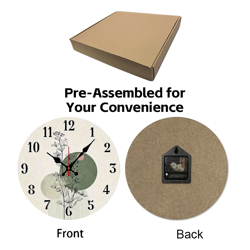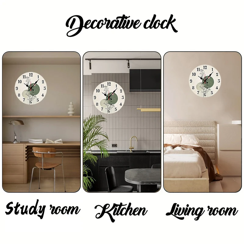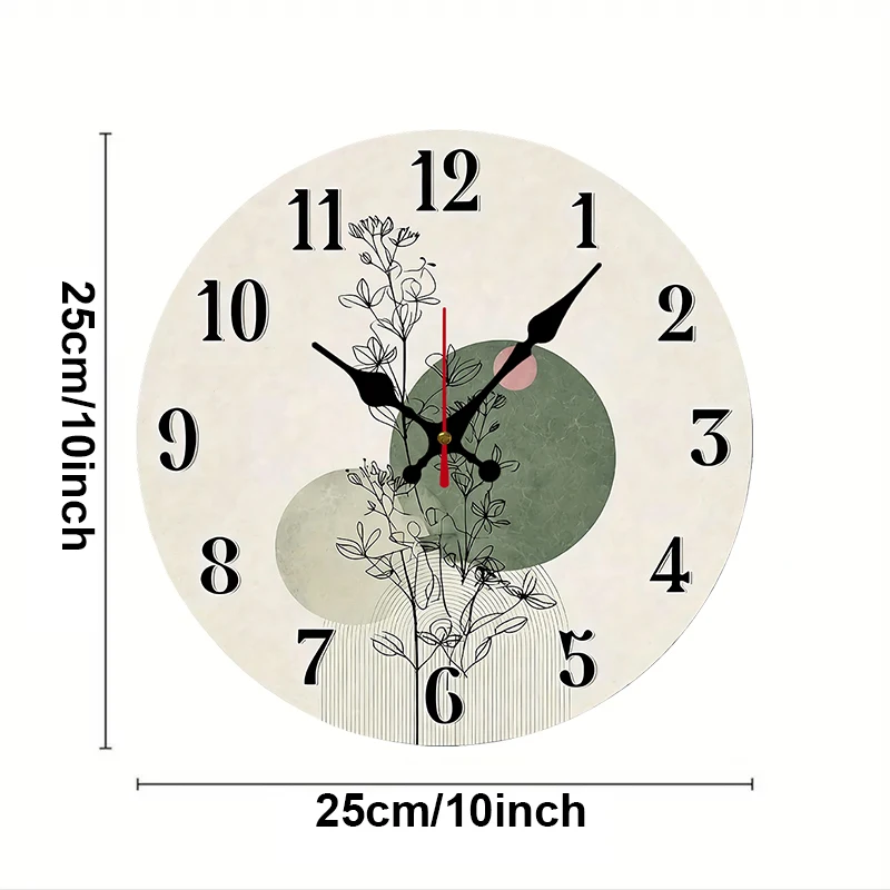 Botanical Design Wooden Round Silent Hanging Wall Clock, Suitable For Living Room, Office, Study Room, Bedroom, Home Decoration