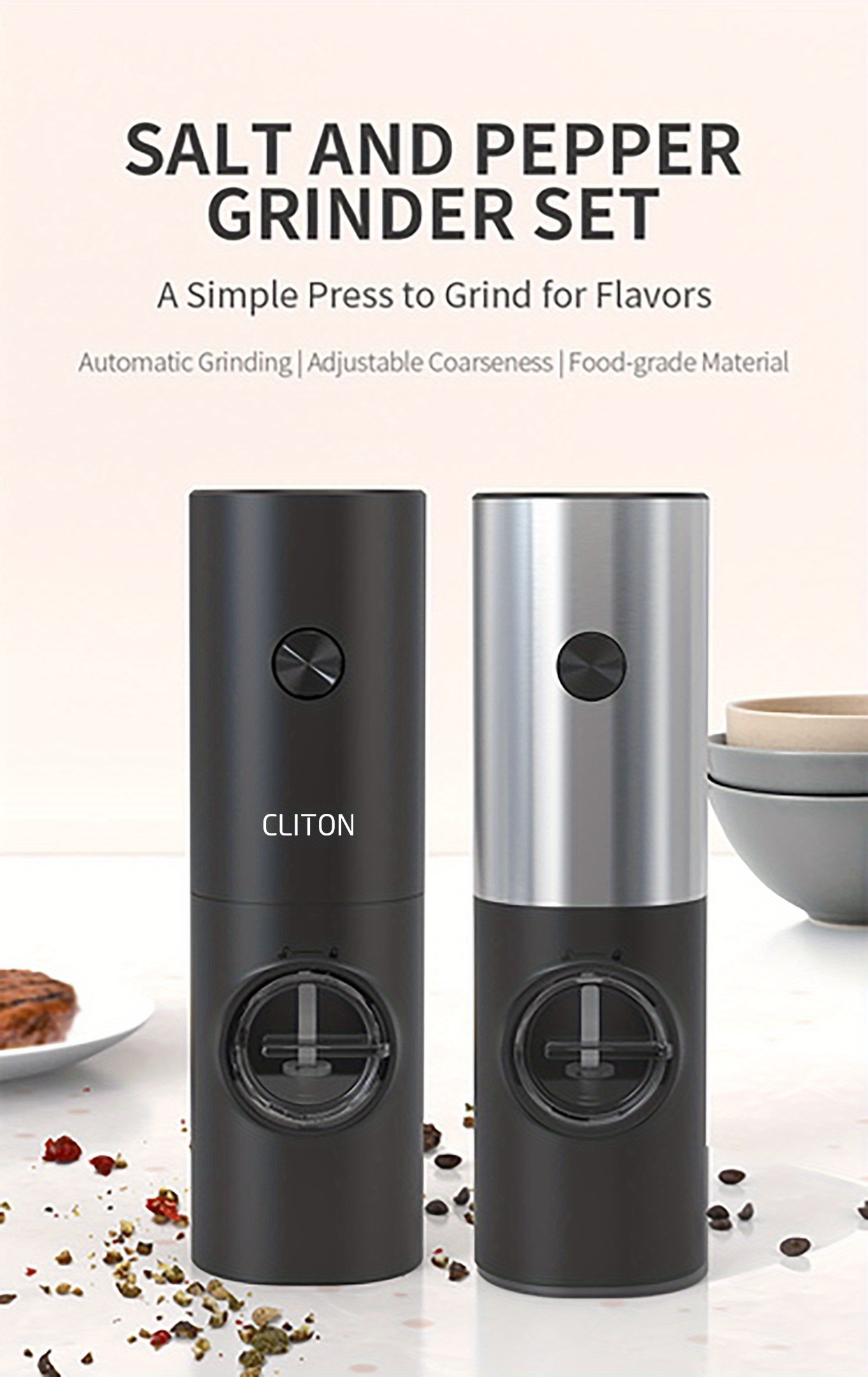 CLITON Electric Pepper Grinder, 3 in 1, Automatic Kitchen Grinder