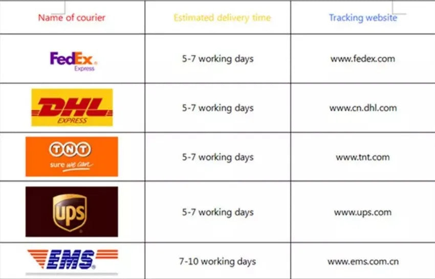 We always shipping via : DHL , FEDEX , if some urgent order , we can using fastest shipping way , deilvery time only 2days .