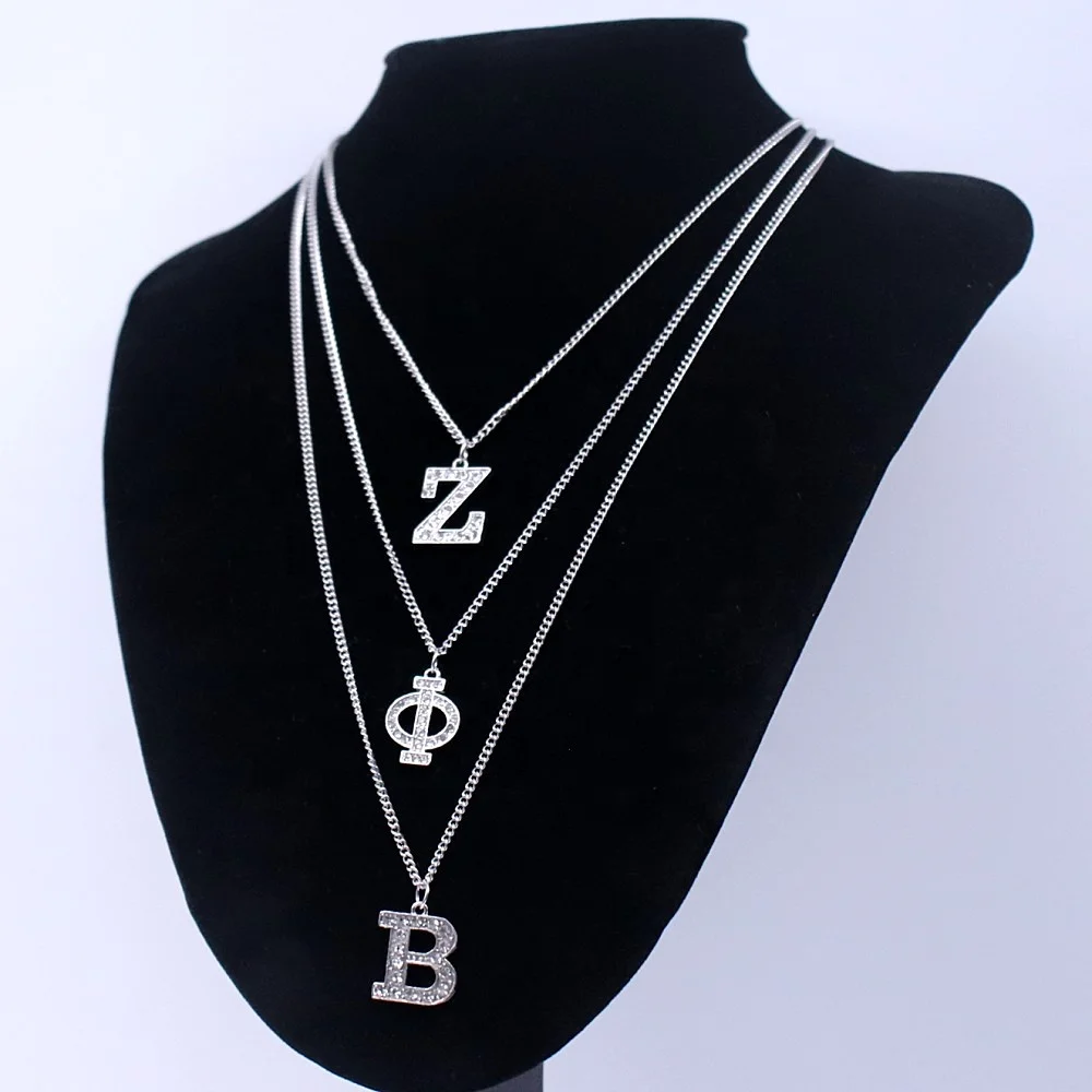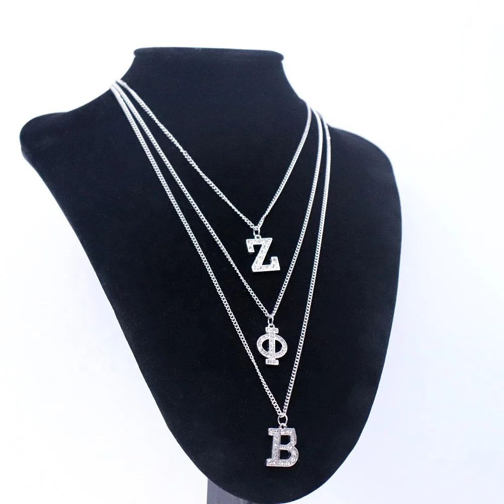 Fashion Metal Sparking Rhinestone Social 1920 Club Greek Letter Zeta Phi Beta Necklace Sorority Jewelry for Finer Women