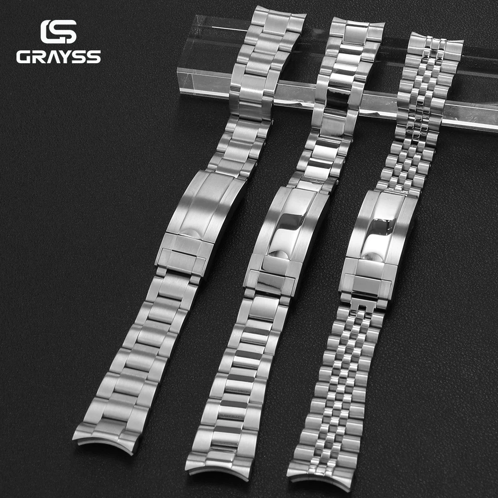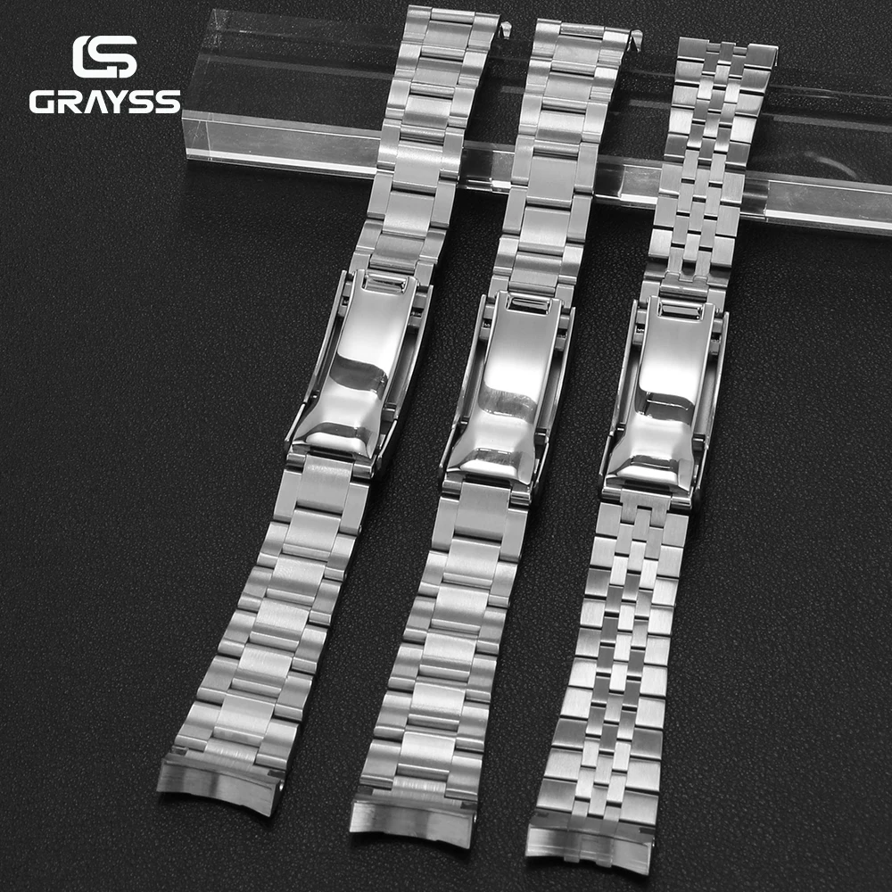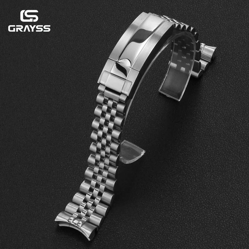 GRAYSS 20MM Width Presidential Solid 316L Bracelet Stainless Steel Glide Lock Clasp Wristband for Sub NH34 NH35 Watch Case