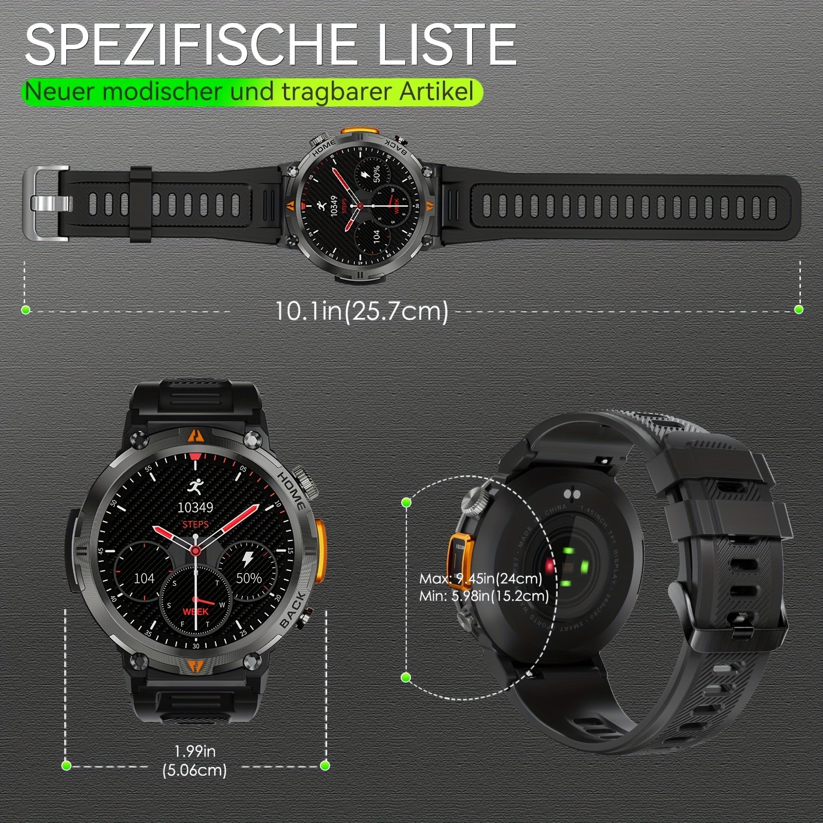 【GREAT CHOICE FOR EXPLORERS】- JELLOO unique smart watch is extremely rugged with the combination of a large 1.45inch(37mm) HD display and aluminum alloy metal case. JELLOO rugged smart watch has success fully passed many standard tests, resistant to high or low temperature,humidity, salt spray and etc.