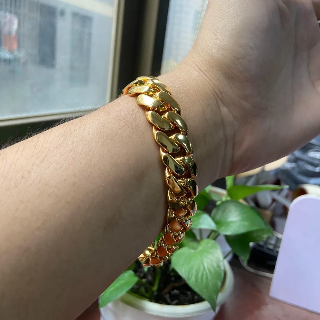 This Cuban link chain is available in a variety of widths and lengths to suit your individual style. With widths ranging from 10mm to 25 mm and lengths from 16" to 24" for necklaces, as well as 7", 8", and 9" for bracelets, this chain is suitable for anyoccasion, from everyday wear to formal events. It’s a versatile piece that effortlessly complements your unique fashion.