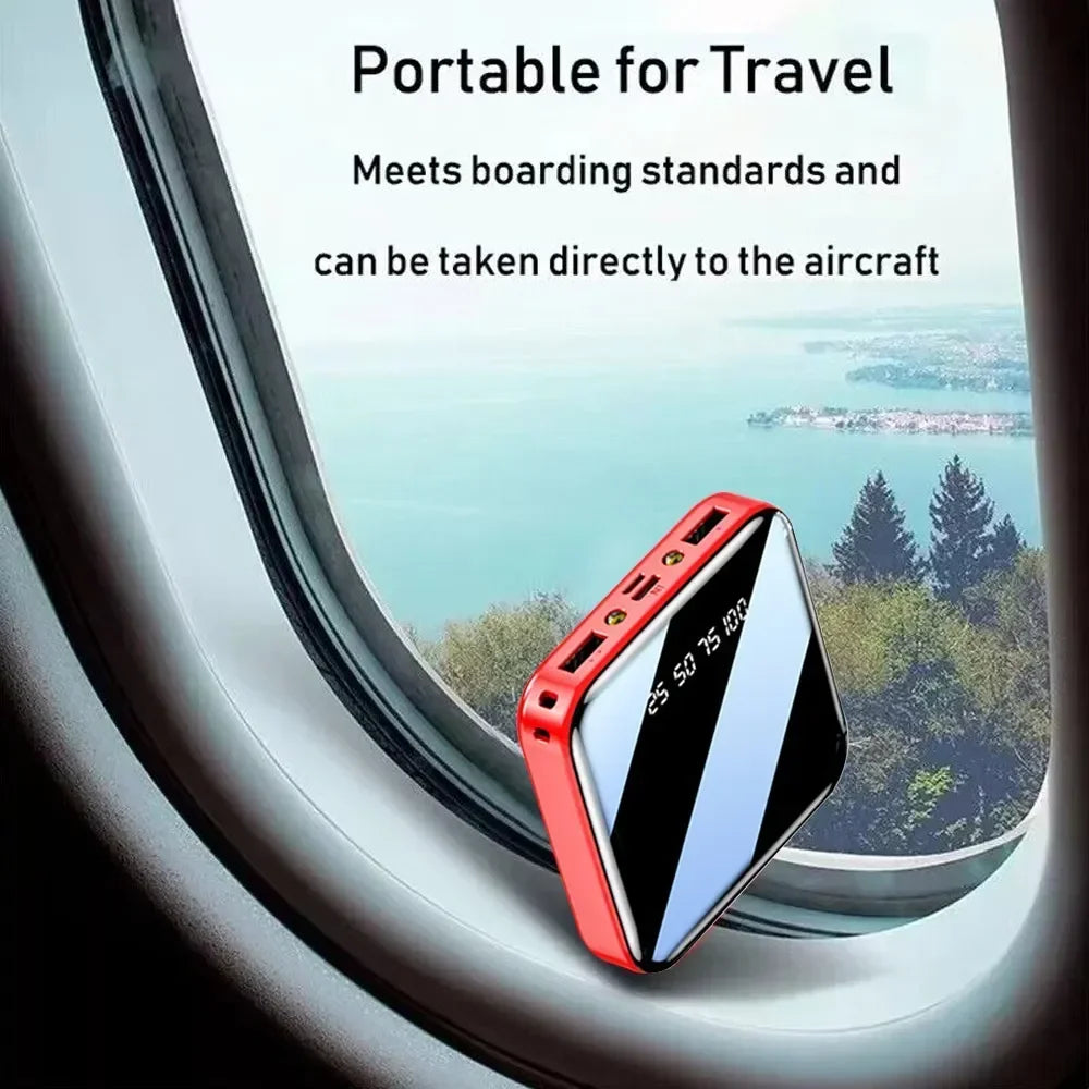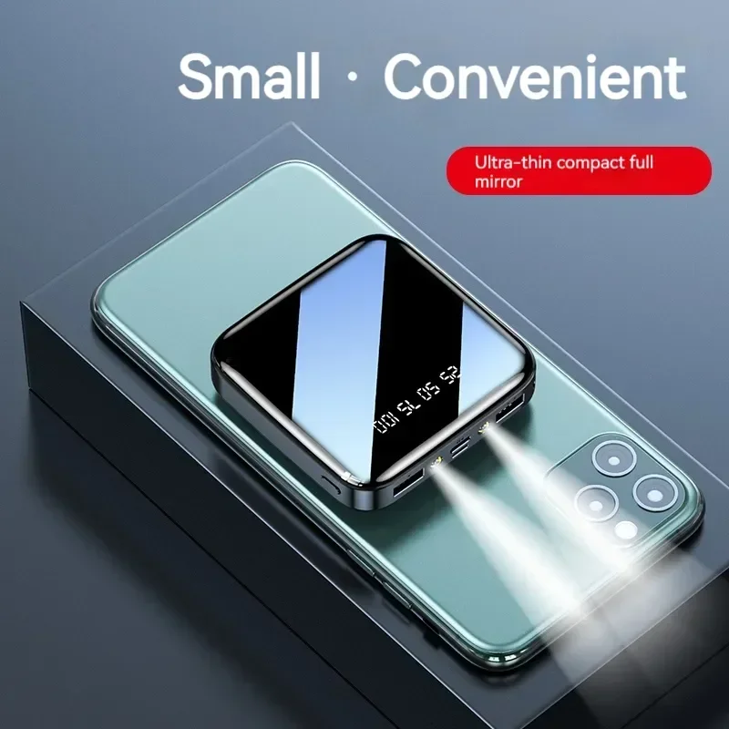 The 200000mAh Mini Power Bank is a portable powerhouse designed to keep your devices charged on the go. Its compact size belies its impressive 200000mAh capacity, ensuring that you can charge multiple devices multiple times without needing to recharge the power bank itself. The sleek, mirror screen design not only looks stylish but also serves as a convenient way to check the power levels of your devices. Whether you're traveling, commuting, or simply need a reliable backup power source, this power bank is your go-to companion.