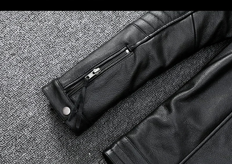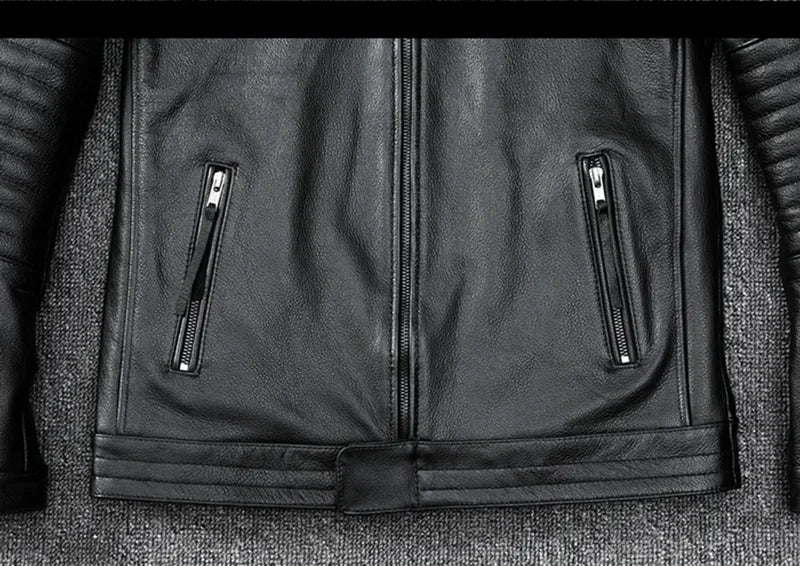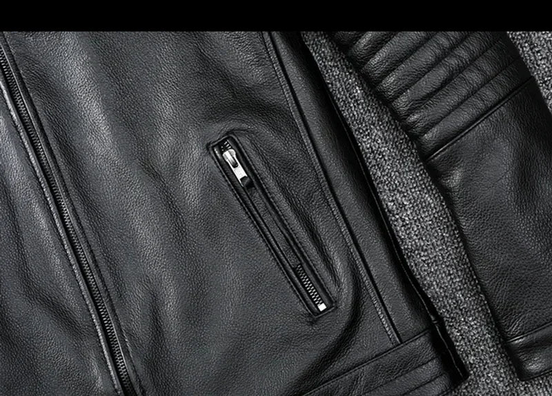 Motorcycle for Men Biker Style Mixed Spinning Slim Cowhide Coat Men Jackets