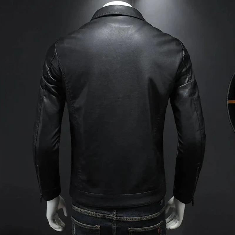 New 2025 Men's Leather Jacket Oversized Slim Motorcycle Biker Suit Autumn/Winter Thickened PU Leathers Waterproof Coat Man