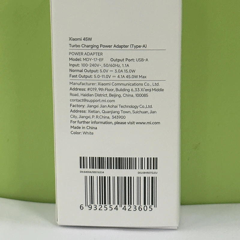Product Name: Xiaomi 45W Turbo Charging Power Adapter (Type-A)