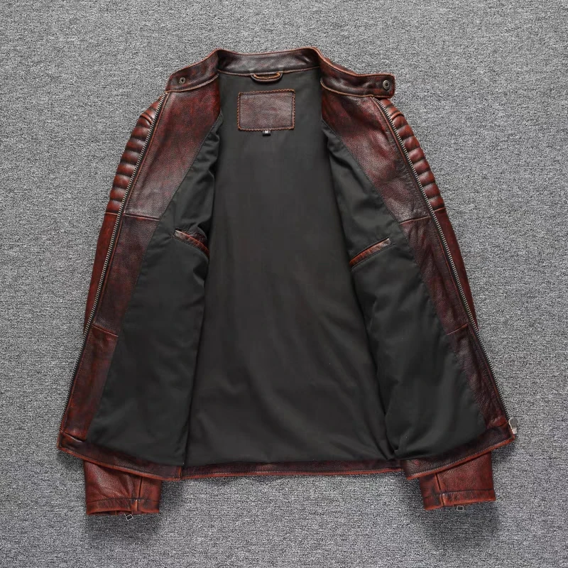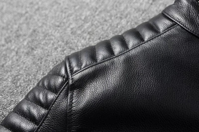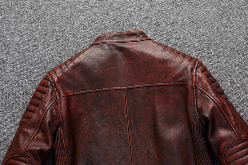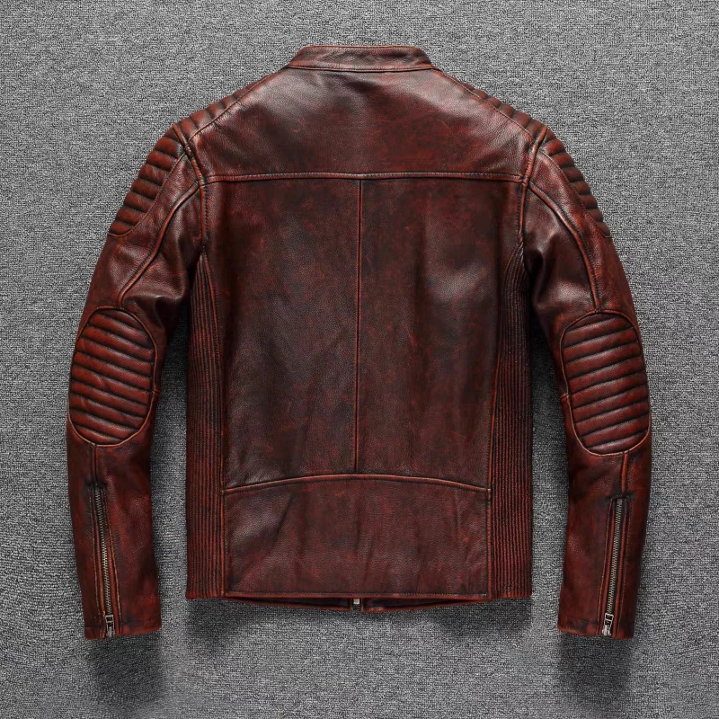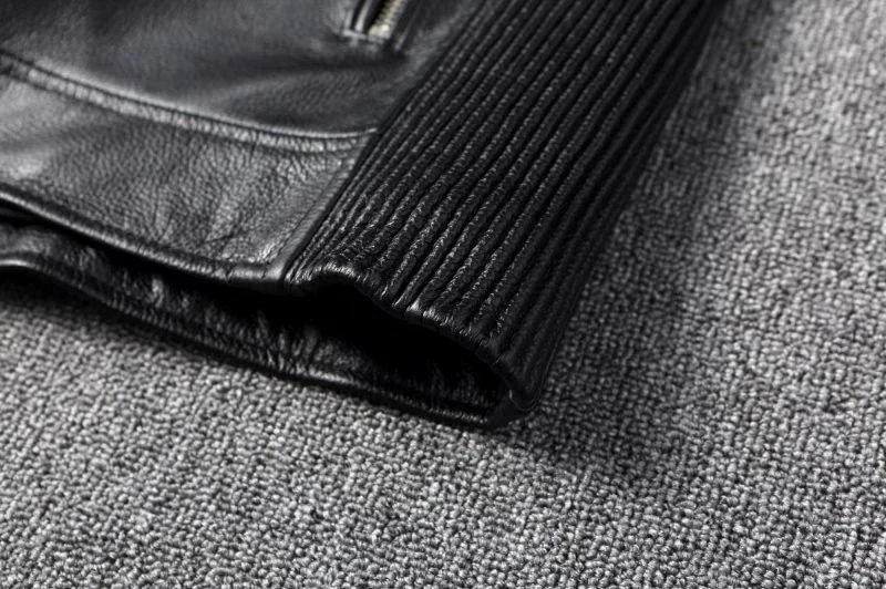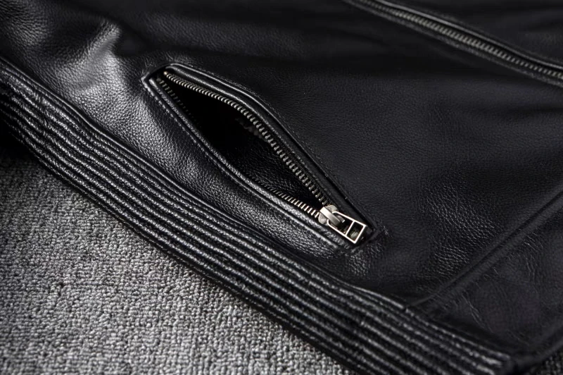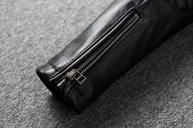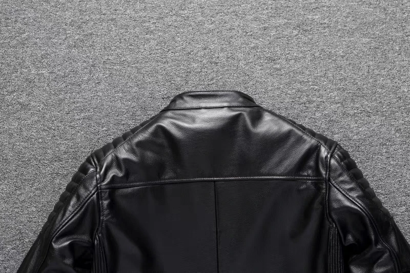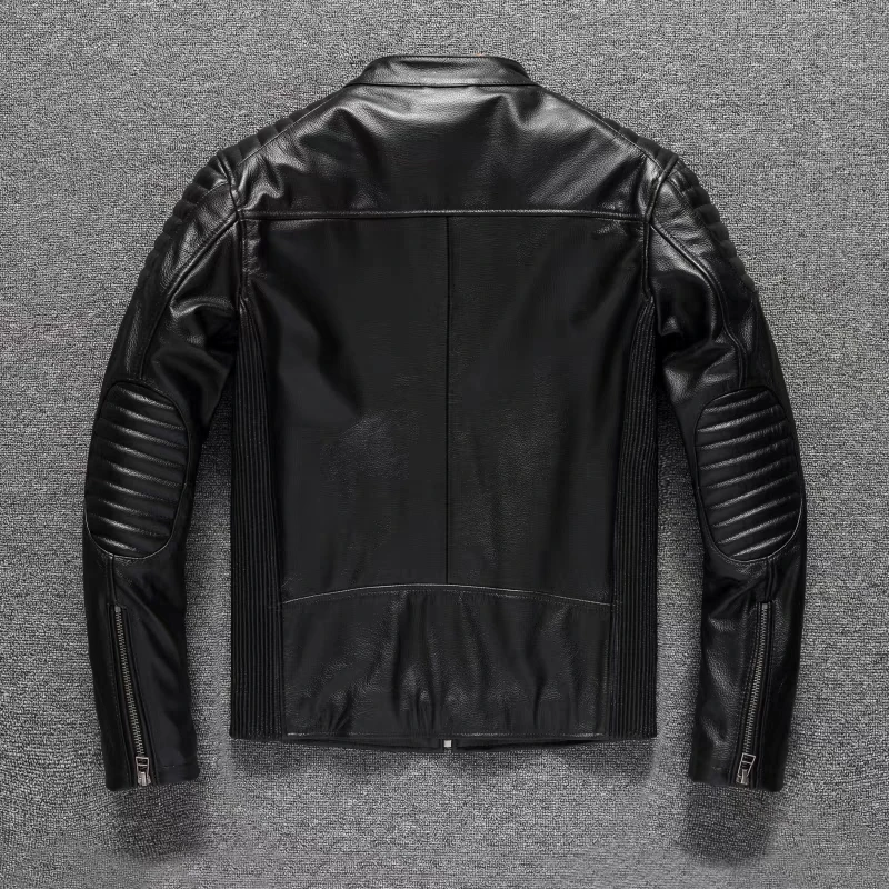 Pure Top Layer Cowhide Motorcycle Suit Leather Jacket Men's Cycling Jacket Slim Fit Stand Collar Short Black Jacket