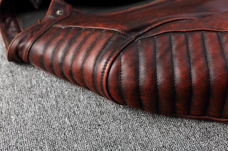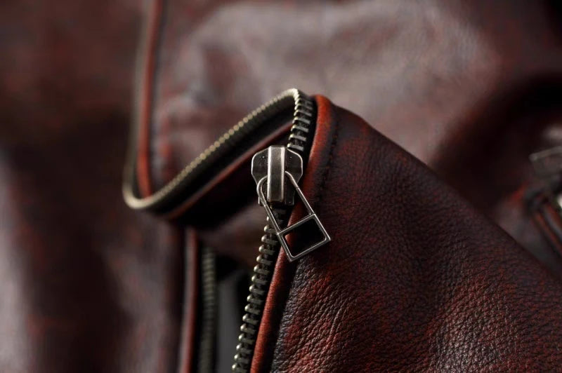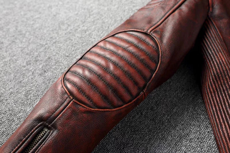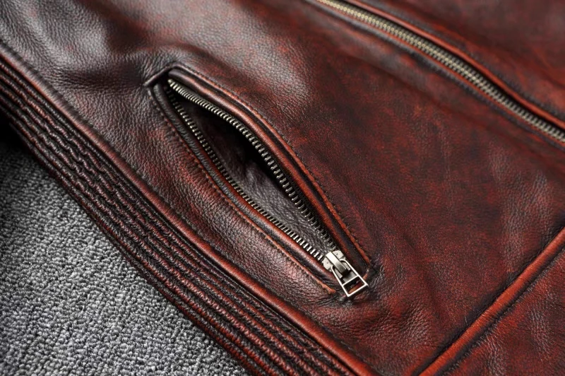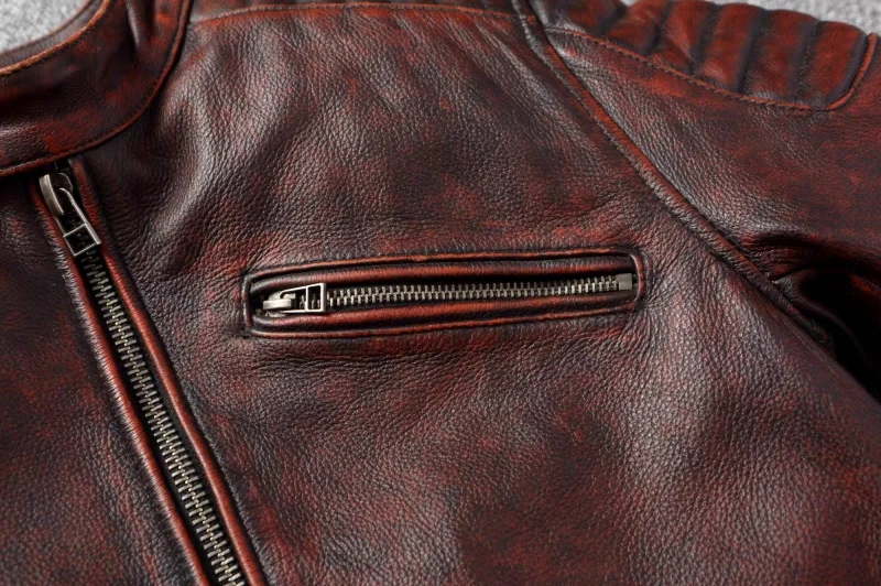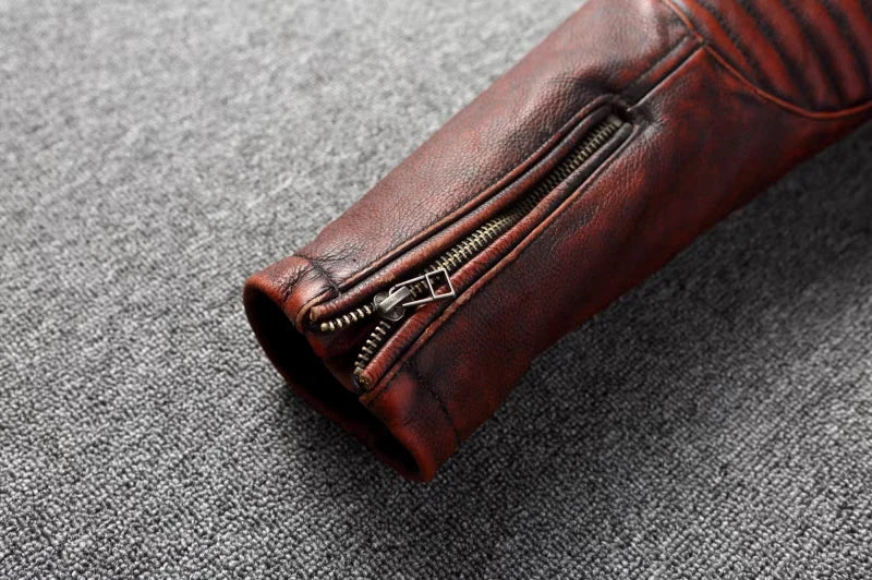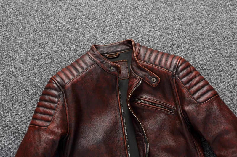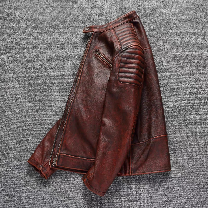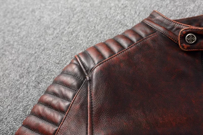 Pure Top Layer Cowhide Motorcycle Suit Leather Jacket Men's Cycling Jacket Slim Fit Stand Collar Short Black Jacket