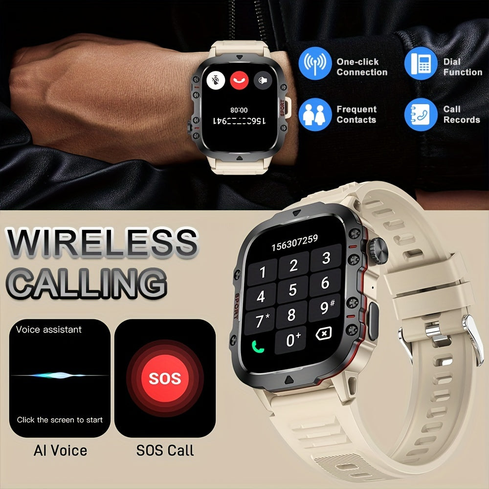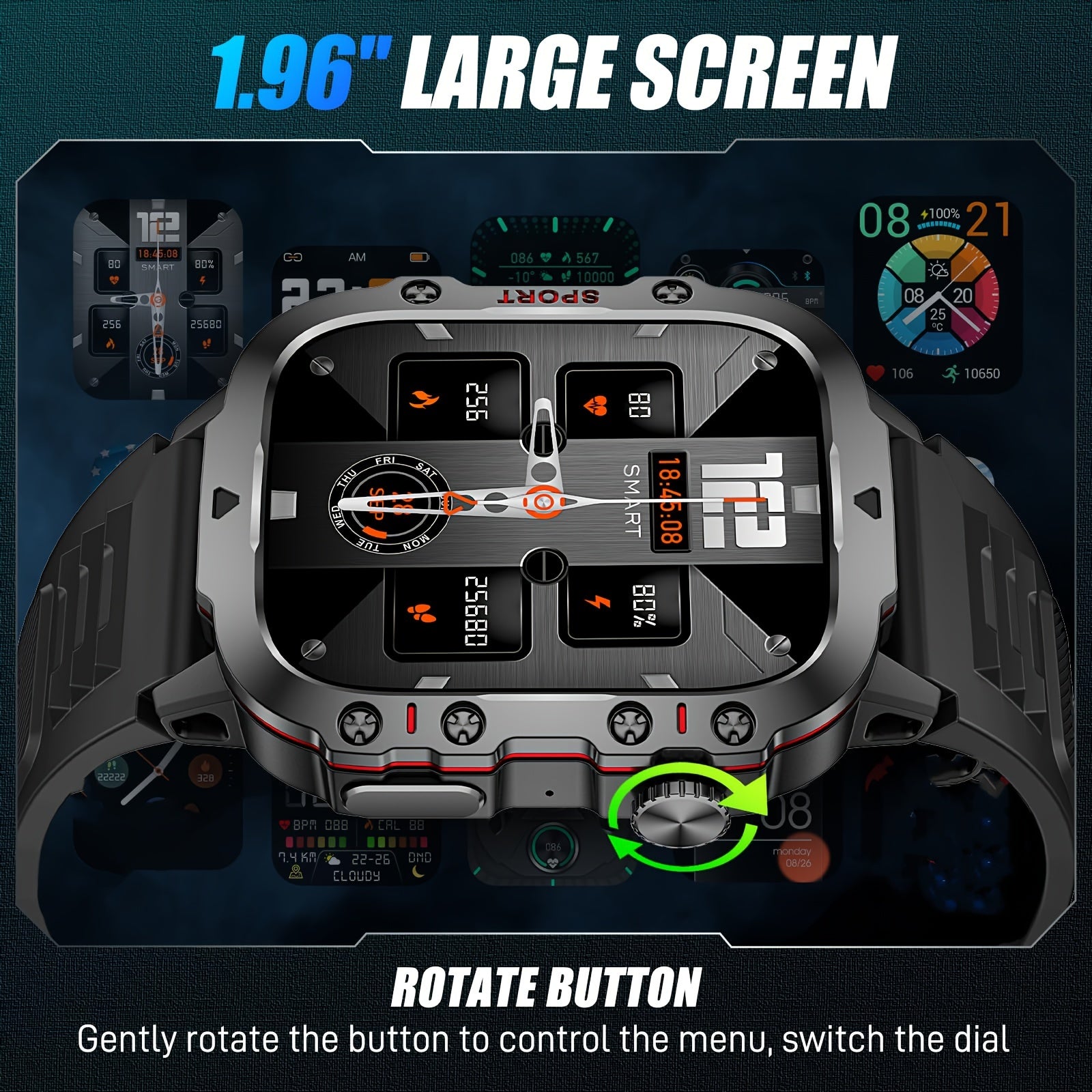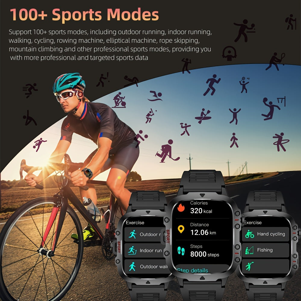 Purspo Outdoor Smartwatch (Answer/Make Calls), 4.98cm Smart Watch For IPhone And Android Phones, Waterproof Sport Watch With Lock-Screen/100+Sport Modes/Long Battery Life/Weather Forecast/Alarm Clock/ Good Gifts For Sportsmen