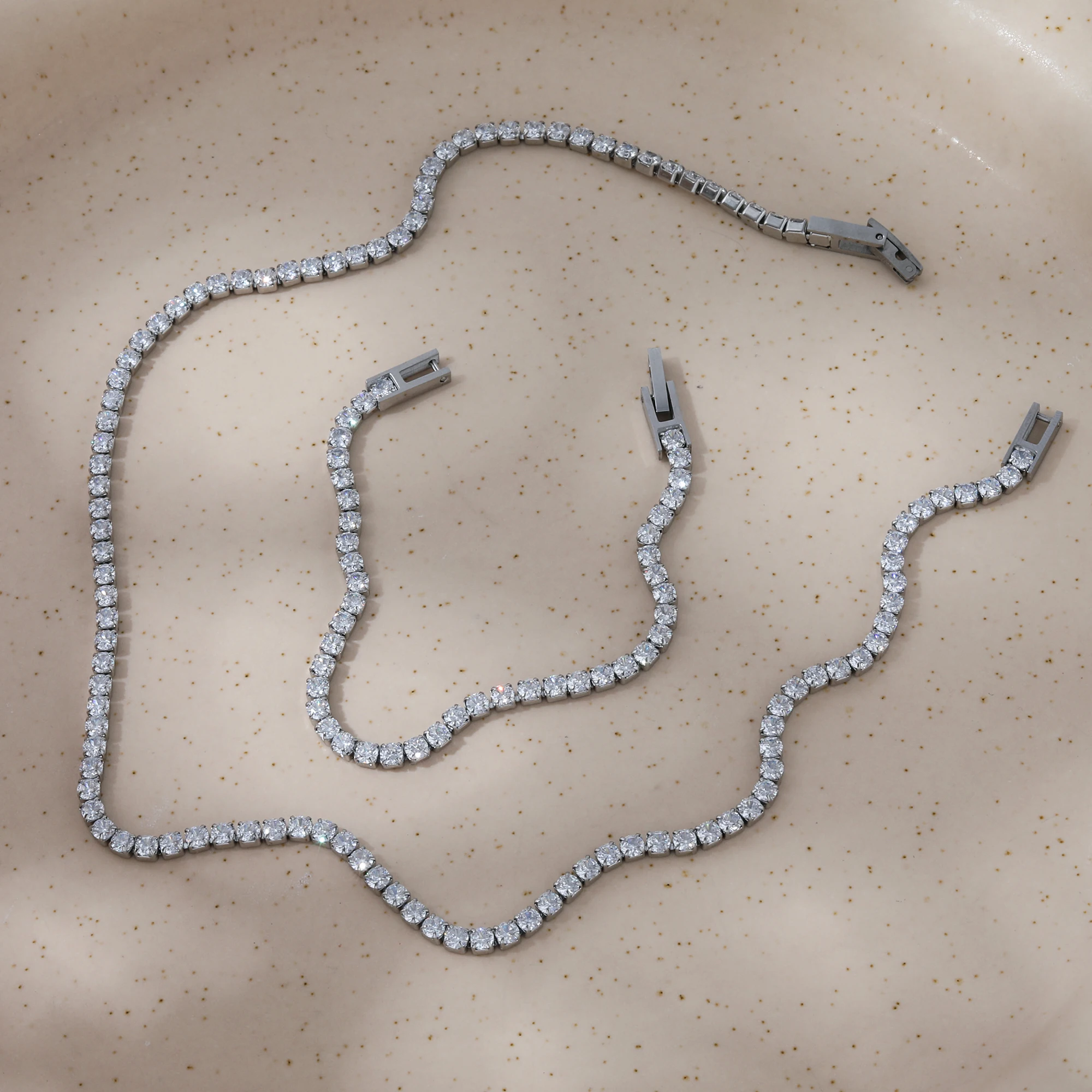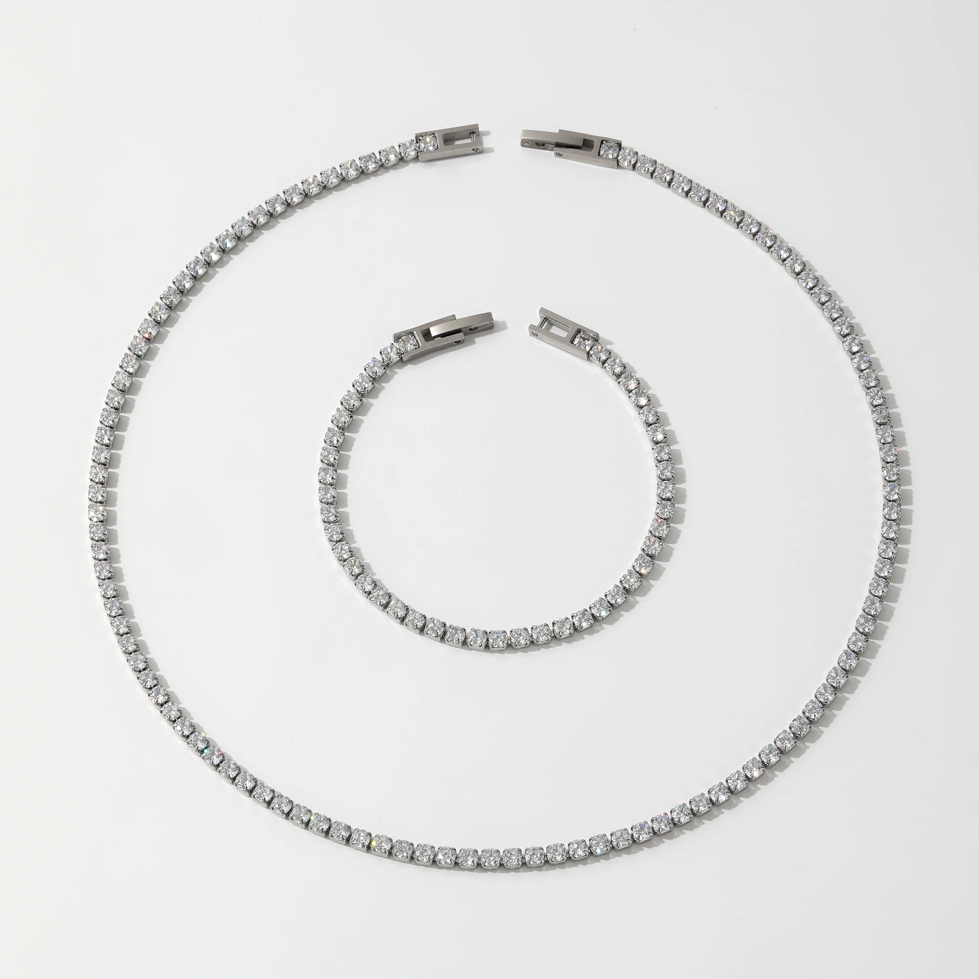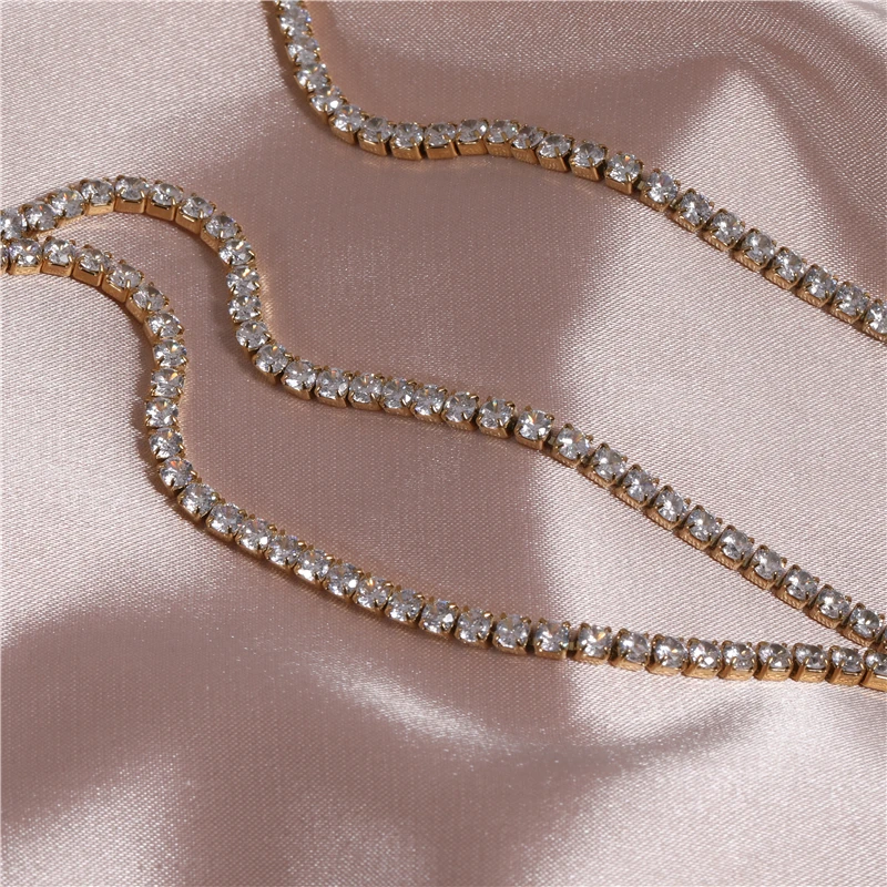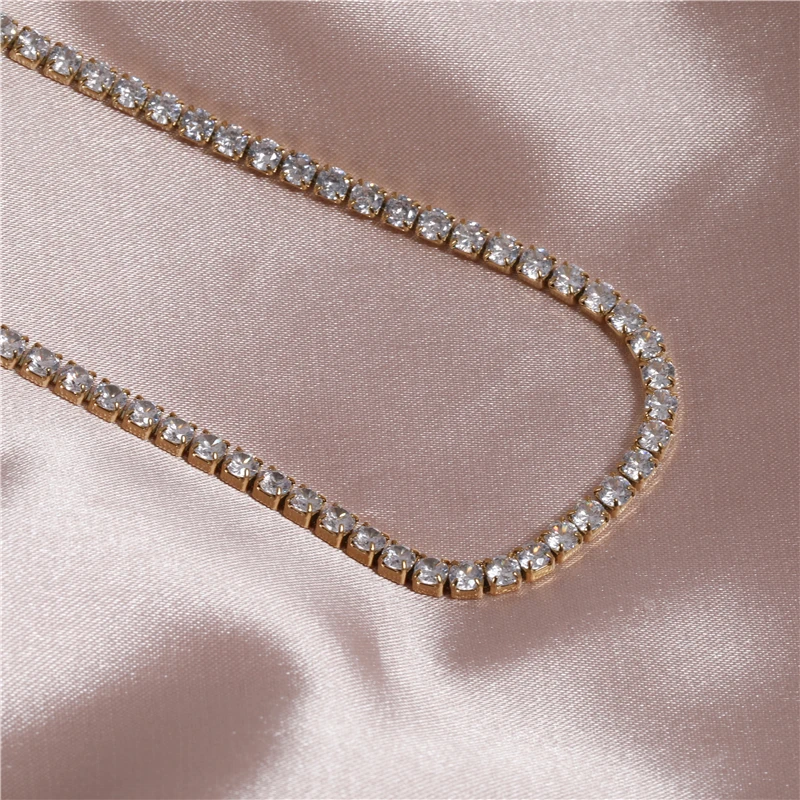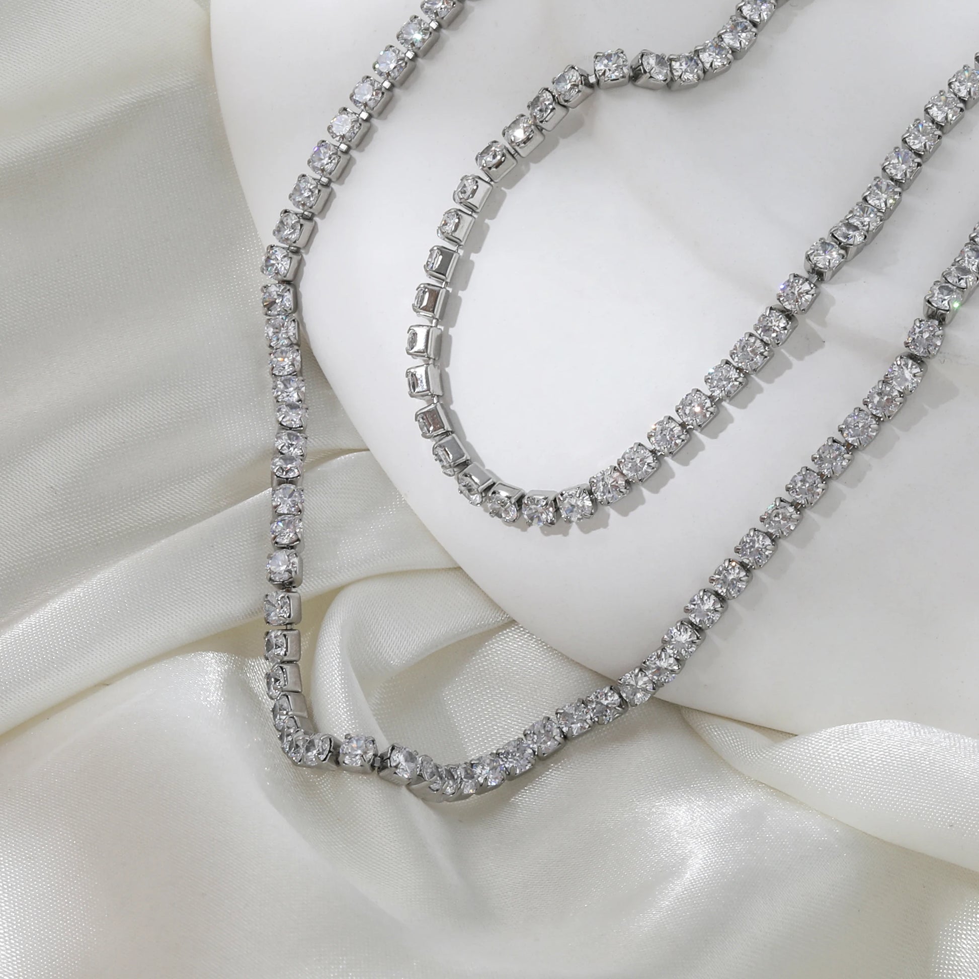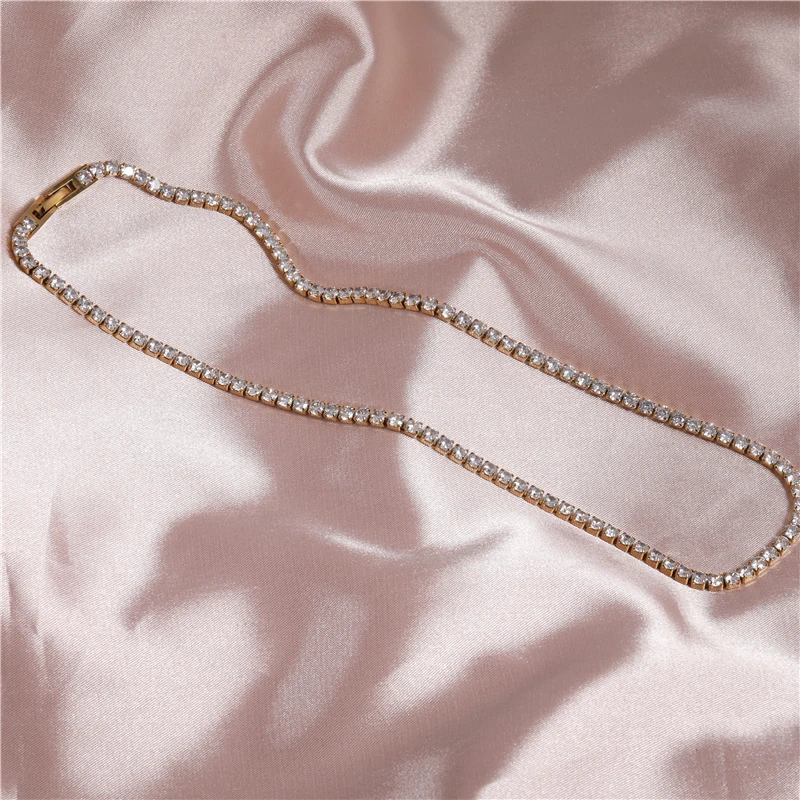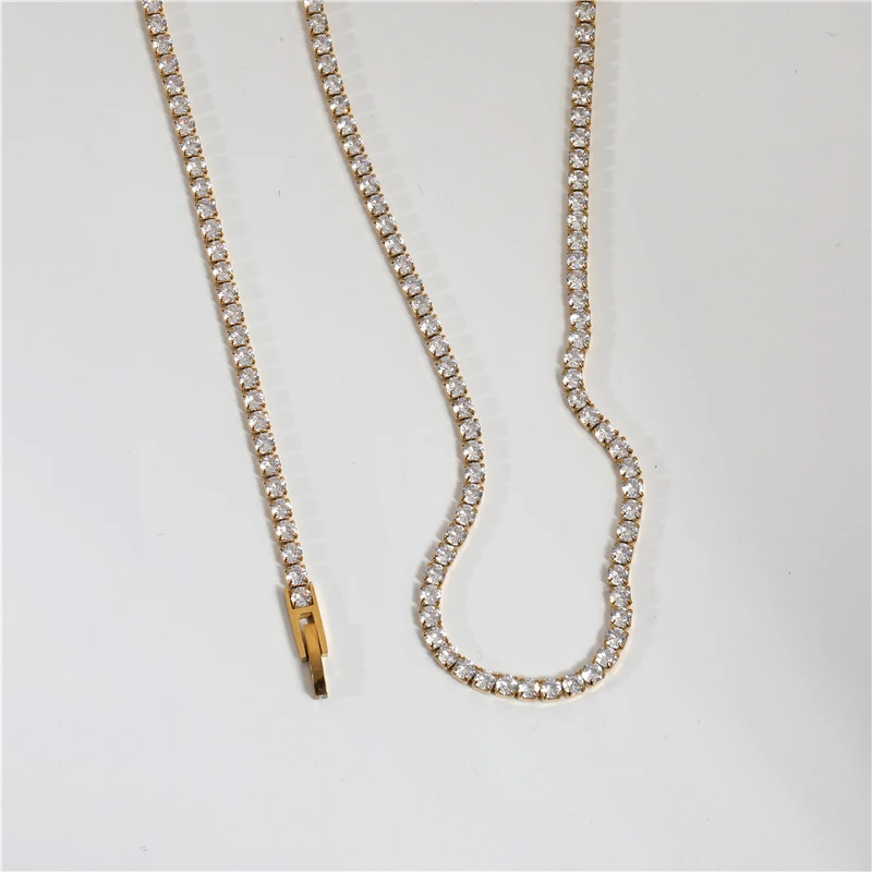 Waterproof & Tarnish Free 18K Gold Plated Luxury Zirconia Pave Stainless Steel Tennis Necklace Fashion Jewelry
