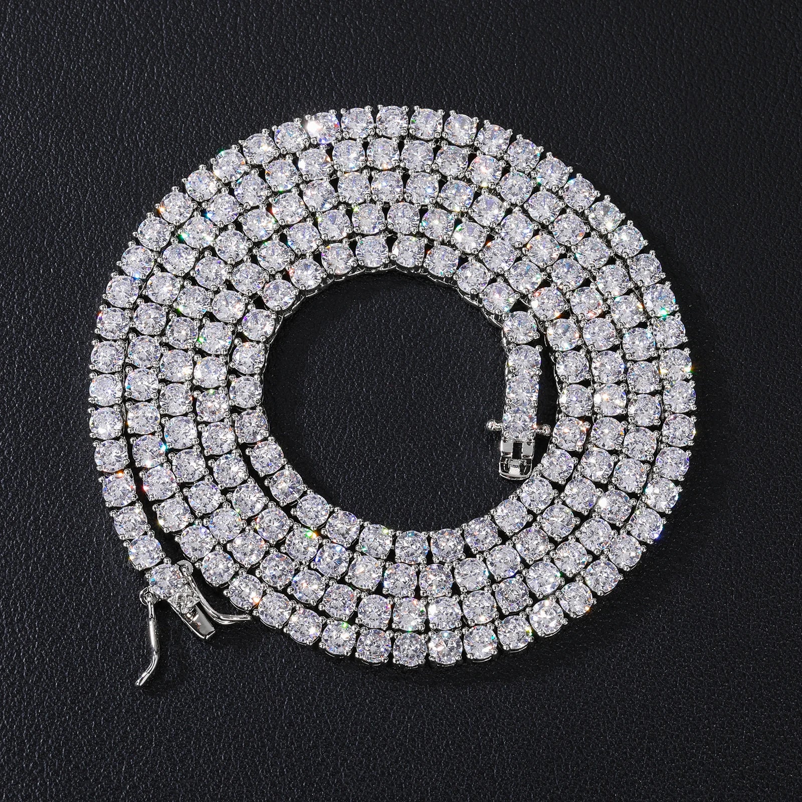 Wholesale Hip Hop Jewelry Fashion Iced Out 18K Gold Silver Plated Brass Zircon Diamond Tennis Chain CZ Necklace for Men Women